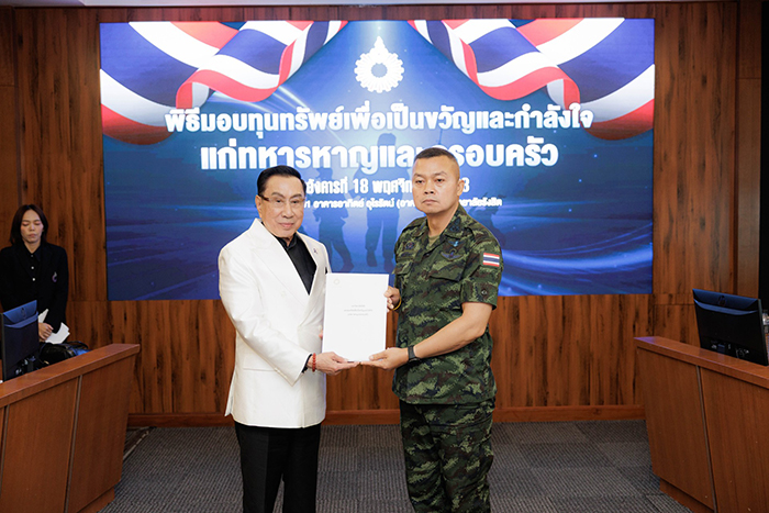 รองศาสตราจารย์ ดร.สุริยะใส กตะศิลา รองอธิการบดีฝ่ายบริหาร มหาวิทยาลัยรังสิต กล่าวเพิ่มเติมว่า การจัดงานครั้งนี้สะท้อนความร่วมมือของหลายภาคส่วนที่ต้องการแสดงความขอบคุณต่อผู้ปฏิบัติหน้าที่เพื่อความมั่นคงของประเทศ พร้อมย้ำว่าปรัชญาของมหาวิทยาลัยรังสิตมุ่งส่งเสริมสังคมธรรมาธิปไตยที่ยึดมั่นในความดี ความเสียสละ และความถูกต้อง โดยการมอบทุนทรัพย์ จำนวน 27 ครอบครัวจึงไม่ใช่เพียงการช่วยเหลือเชิงสัญลักษณ์ แต่เป็นส่วนหนึ่งของพันธกิจในการดูแลผู้ปฏิบัติหน้าที่เพื่อชาติ สร้างความเข้าใจต่อความเสี่ยงของทหาร และเป็นเวทีในการส่งต่อกำลังใจให้ทุกครอบครัวรู้ว่า พวกเขาไม่เคยยืนอยู่ลำพัง นับเป็นอีกหนึ่งก้าวสำคัญที่สะท้อนความห่วงใยของสังคมไทยต่อผู้เสียสละเพื่อส่วนรวม และเป็นการตอกย้ำว่ามหาวิทยาลัยรังสิตจะยังคงทำงานร่วมกับทุกภาคส่วนเพื่อสนับสนุนและดูแลทหารหาญและครอบครัวอย่างต่อเนื่อง
