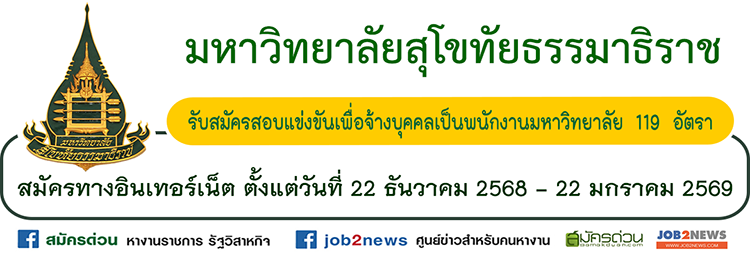 ประกาศมหาวิทยาลัยสุโขทัยธรรมาธิราช เรื่อง รับสมัครสอบแข่งขันเพื่อจ้างบุคคลเป็นพนักงานมหาวิทยาลัย สังกัดมหาวิทยาลัยสุโขทัยธรรมาธิราช โดยมีรายละเอียดดังต่อไปนี้