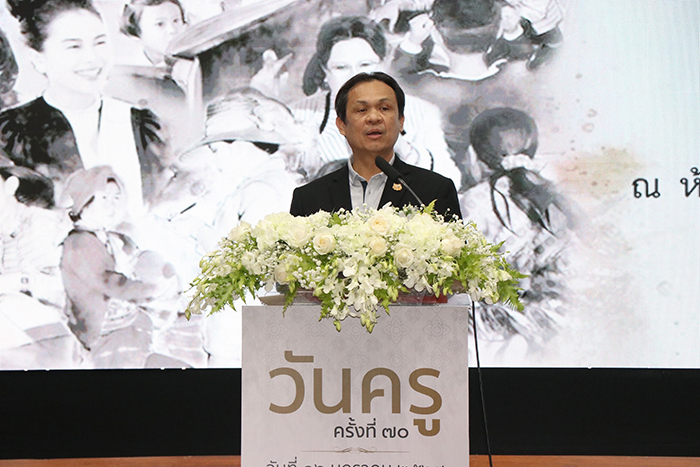 “งานวันครู ครั้งที่ 70 ครั้งนี้ ให้ความสำคัญสูงสุดในการเทิดพระเกียรติพระองค์ท่าน และยกย่องเชิดชูเกียรติผู้ประกอบวิชาชีพทางการศึกษา วันที่ 16 มกราคม ครูควรมีความสุขที่สุด จึงขอให้ศิษย์ทุกคน ร่วมกัน ‘น้อมจิตคารวะ และระลึกถึงพระคุณครู’ ร่วมทำกิจกรรมที่เป็นประโยชน์ต่อสถานศึกษา ชุมชน และท้องถิ่น ที่จัดขึ้นโดยคุรุสภา และหน่วยจัดงานวันครูทั่วประเทศ ” รมช.ศธ. กล่าว