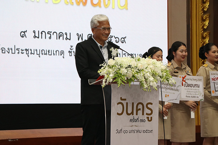 นายองอาจ วงษ์ประยูร รมช.ศธ. กล่าวว่า รัฐบาลให้ความสำคัญต่อครูและวิชาชีพครูเสมอมา การจัดงานวันครู ประจำปี พ.ศ.2569 นี้ เป็นการจัดงานครั้งที่ 70 กระทรวงศึกษาธิการ โดยคุรุสภา องค์กรหลัก และองค์กรในกำกับ ร่วมกันจัดในหัวข้อ “พระผู้ทรงเป็นแม่และครูแห่งแผ่นดิน” เพื่อเทิดพระเกียรติสมเด็จพระนางเจ้าสิริกิติ์ พระบรมราชินีนาถ พระบรมราชชนนีพันปีหลวง และส่งเสริมยกย่องเชิดชูเกียรติผู้ประกอบวิชาชีพทางการศึกษาที่ประกอบคุณงามความดี หรือทำคุณประโยชน์ต่อวงการศึกษา ให้เป็นที่ประจักษ์แก่สาธารณชน และเป็นแบบอย่างให้เยาวชนรุ่นหลังได้ยึดถือปฏิบัติตาม โดยจัดพร้อมกันทั้งส่วนกลางและส่วนภูมิภาคทั่วประเทศ ในรูปแบบผสมผสาน ทั้ง Onsite และ Online ซึ่งกิจกรรมในส่วนกลาง ได้กราบเรียนเชิญนายกรัฐมนตรี เป็นประธานในพิธีวันที่ 16 มกราคม 2569 เวลา 09.00 น. ณ หอประชุมคุรุสภา กระทรวงศึกษาธิการ โดยมีการถ่ายทอดสด พร้อมมีล่ามภาษามือ ผ่านสถานีโทรทัศน์แห่งประเทศไทย (NBT) และสถานีวิทยุกระจายเสียงแห่งประเทศไทย รวมทั้งผ่านช่องทางออนไลน์ยูทูป และแฟนเพจเฟซบุ๊กคุรุสภา เพื่อให้ผู้ประกอบวิชาชีพทางการศึกษา นักเรียน นิสิต นักศึกษา และประชาชนทั่วไป สามารถรับชมพิธีการงานวันครูไปพร้อมกันทั่วประเทศ