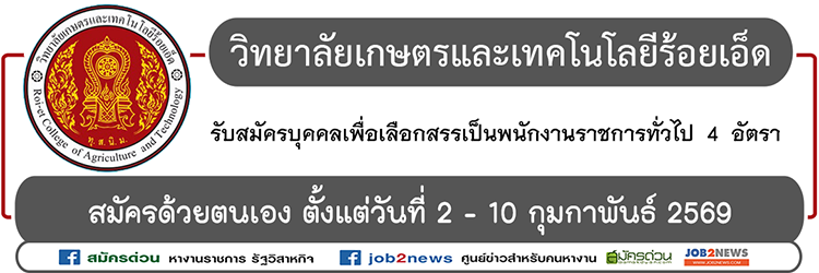ประกาศวิทยาลัยเกษตรและเทคโนโลยีร้อยเอ็ด เรื่อง รับสมัครบุคคลเพื่อเลือกสรรเป็นพนักงานราชการทั่วไป โดยมีรายละเอียดดังต่อไปนี้