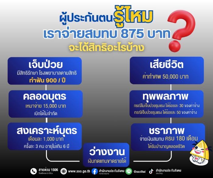 เงินสมทบ 875 บาทต่อเดือน ถูกนำไปจัดสรรอย่างเป็นระบบเพื่อดูแลผู้ประกันตน แบ่งเป็น 7 กรณีสำคัญ ดังนี้