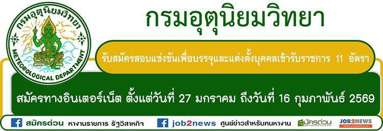 ผู้ประสงค์จะสมัครสอบ สมัครได้ทางอินเทอร์เน็ต ตั้งแต่วันที่ 27 มกราคม ถึงวันที่ 16 กุมภาพันธ์ 2569 ตลอด 24 ชั่วโมง ไม่เว้นวันหยุดราชการ ที่เว็บไซต์ https://tmd.thaijobjob.com/ อ่านรายละเอียดที่ไฟล์ประกาศรับสมัคร