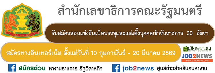 ประกาศสำนักเลขาธิการคณะรัฐมนตรี เรื่อง รับสมัครสอบแข่งขันเพื่อบรรจุและแต่งตั้งบุคคลเข้ารับราชการเป็นข้าราชการพลเรือนสามัญ โดยมีรายละเอียดดังต่อไปนี้