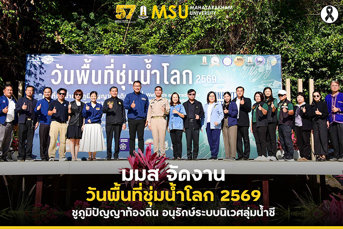 สถาบันวิจัยวลัยรุกขเวช มหาวิทยาลัยมหาสารคาม ร่วมกับภาคีเครือข่าย จัดกิจกรรมรณรงค์เนื่องในวันพื้นที่ชุ่มน้ำโลก ประจำปี 2569 มุ่งเน้นการเชื่อมโยงมรดกทางวัฒนธรรมและภูมิปัญญาท้องถิ่นเข้ากับการอนุรักษ์ทรัพยากรธรรมชาติ ตามเป้าหมายการพัฒนาที่ยั่งยืน (SDGs)