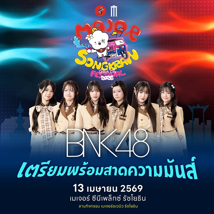 เมเจอร์ ซีนีเพล็กซ์ กรุ้ป ร่วมกับ สติงค์ เอเนอร์จี้ดริ๊งก์ โดย บริษัท ซันโทรี่ เป๊ปซี่โค เบเวอเรจ (ประเทศไทย) จำกัด เนรมิต เมเจอร์ อเวนิว รัชโยธิน ให้เป็นแลนด์มาร์กแห่งความสนุกในเทศกาลสงกรานต์ที่ตอบโจทย์ทุกเจเนอเรชั่นจัดงาน “Major Songkran Festival 2026” ต่อเนื่องเป็นปีที่ 3 ภายใต้คอนเซปต์ “Thai Soft Power” มุ่งเน้นการยกระดับวัฒนธรรมไทยผ่านความคิดสร้างสรรค์ร่วมสมัย พร้อมระเบิดความมันส์การเล่นน้ำดับร้อนแบบจัดเต็มในวันที่ 13 เมษายน 2569 ตั้งแต่เวลา 15.00 - 22.00 น. ณ ลานกิจกรรม เมเจอร์ อเวนิว รัชโยธิน ชมฟรีคอนเสิร์ตกับศิลปินวง BNK48, อัพ ภูมิพัฒน์, ภูมิ ภูริพันธ์ และ Jrbubblegum พร้อมตอบรับกระแสไวรัล “การห่มสไบใส่ยีนส์” ชวนทุกคนมาร่วมสร้าง Soft Power ห่มสไบมาเล่นน้ำร่วมสร้างสีสันและลุ้นรับของรางวัลพิเศษภายในงาน