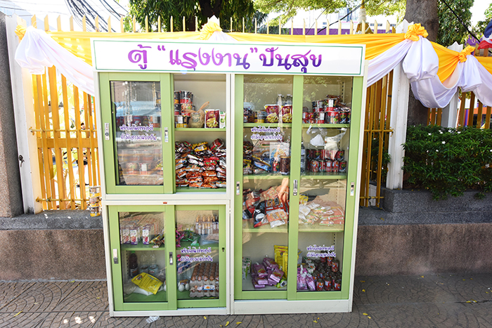 โดยภายในตู้แรงงานปันสุข ประกอบด้วย เครื่องอุปโภคบริโภค ของใช้จำเป็นในชีวิตประจำวัน อาหารแห้ง ปลากระป๋อง บะหมี่กึ่งสำเร็จรูป น้ำดื่ม เป็นต้น ซึ่งผู้ที่ได้รับความเดือดร้อนสามารถหยิบได้ฟรี และหากใครที่ต้องการแบ่งปันก็สามารถนำสิ่งของมาเพิ่มเติมในตู้นี้ได้ ภายใต้แนวคิด “หยิบได้แต่พอดี ถ้ามีเอามาแบ่งปัน” เพื่อร่วมเป็นกำลังใจและช่วยเหลือให้ทุกคนก้าวพ้นวิกฤติโควิด-19 ไปด้วยกัน