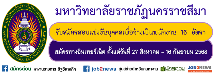 ประกาศมหาวิทยาลัยราชภัฏนครราชสีมา เรื่อง รับสมัครสอบแข่งขันบุคคลเพื่อจ้างเป็นพนักงานในสถาบันอุดมศึกษาสายสนับสนุน โดยมีรายละเอียดดังต่อไปนี้