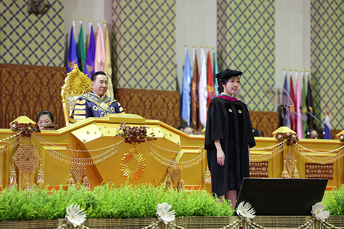 แพทย์หญิงศุภานัน เจนธีรวงศ์ บัณฑิตวิทยาลัยแพทยศาสตร์ มหาวิทยาลัยรังสิต กล่าวว่า การทำกิจกรรมควบคู่กับการเรียนแพทย์ตลอดหลายปีที่ผ่านมา ทำให้ตนเติบโตทั้งด้านทักษะการทำงานและพัฒนาด้านจิตใจอย่างลึกซึ้ง ตั้งแต่การทำงานร่วมกับคนหลายกลุ่มในบทบาทนายกสหพันธ์นิสิตนักศึกษาแพทย์ฯ การประสานงานระดับประเทศ การจัดงานขนาดใหญ่ ไปจนถึงการพัฒนาแพลตฟอร์มสุขภาพจิตที่มีผู้ใช้จำนวนมาก ประสบการณ์เหล่านี้ไม่เพียงเพิ่มพูนทักษะการทำงาน แต่ยังหล่อหลอมให้ตนเองเป็นคนที่ดีขึ้น รู้จักการทำงานเป็นทีมอย่างมีประสิทธิภาพ บริหารเวลาและความกดดันได้ดีขึ้น มองปัญหาอย่างเป็นระบบ และสื่อสารกับคนต่างช่วงวัยด้วยความเคารพและเข้าใจ พร้อมเรียนรู้ภาวะผู้นำที่ต้องรับผิดชอบต่อผลลัพธ์ท่ามกลางความกดดัน ทั้งหมดนี้ทำให้ตนเติบโตเป็นผู้ทำงานที่แข็งแรงขึ้น ดิฉันภาคภูมิใจและตระหนักถึงความรับผิดชอบที่จะสานต่อโอกาสอันทรงคุณค่านี้ ด้วยเกียรติของวิชาชีพแพทย์และม.รังสิต จะตั้งใจทำงานอย่างเต็มความสามารถเพื่อให้ระบบสาธารณสุขและสังคมไทยพัฒนาไปในทิศทางที่ดีขึ้น ขอขอบคุณมหาวิทยาลัยที่มอบโอกาสและสั่งสอนให้ไม่เพียงรู้ “วิชาการ” แต่ยังรู้ “วิชางาน” และ “วิชาคน” ซึ่งเป็นพื้นฐานสำคัญในการทำงานและการอยู่ร่วมกับผู้อื่นอย่างมีความหมาย ความเอื้อเฟื้อ การสนับสนุน และกำลังใจจากทุกคนที่ทำให้มายืนในจุดนี้ได้ด้วยหัวใจที่เปี่ยมด้วยความกตัญญูและความมุ่งมั่นที่จะตอบแทนสังคมต่อไป