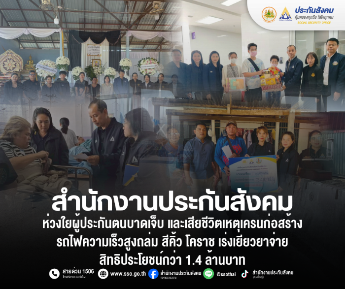 ทั้งนี้ สำนักงานประกันสังคมยืนยันความพร้อมในการดูแล อำนวยความสะดวก และชี้แจงสิทธิประโยชน์แก่ทายาทและผู้ประสบเหตุอย่างใกล้ชิด เพื่อให้ได้รับความคุ้มครองอย่างครบถ้วน ถูกต้อง และช่วยบรรเทาความเดือดร้อนของครอบครัวผู้ได้รับผลกระทบโดยเร็วที่สุด