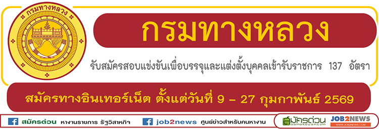 รับสมัครตั้งแต่วันที่ 9 - 27 กุมกาพันธ์ 2569ตั้งแต่วันที่ 9 - 27 กุมกาพันธ์ 2569 ตลอด 24 ชั่วโมง ไม่เว้นวันหยุดราชการ ที่เว็บไซต์ https://doh.thaijobjob.com/ อ่านรายละเอียดที่ไฟล์ประกาศรับสมัคร