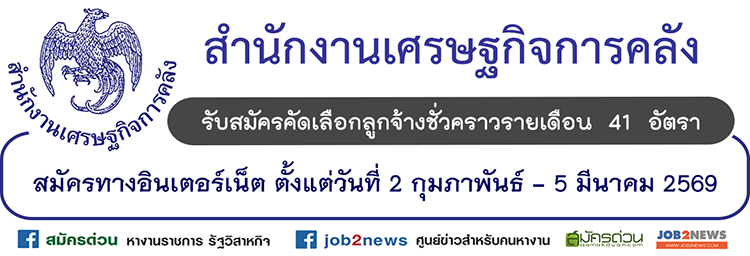 ประกาศสำนักงานเศรษฐกิจการคลัง เรื่อง รับสมัครคัดเลือกลูกจ้างชั่วคราวรายเดือน ตำแหน่งเศรษฐกร (ปริญญาโท) ตำแหน่ง