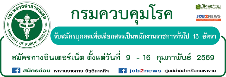 ประกาศกรมควบคุมโรค เรื่อง รับสมัครบุคคลเพื่อเลือกสรรเป็นพนักงานราชการทั่วไปในตําแหน่งต่าง ๆ สังกัดกรมควบคุมโรค