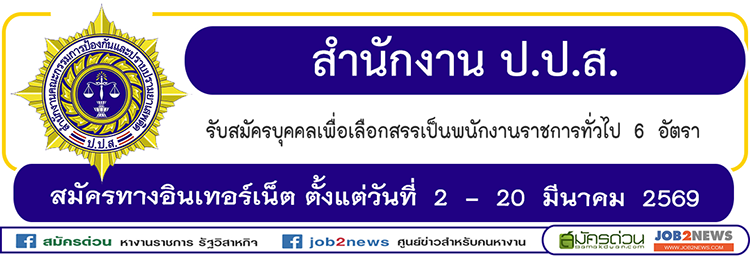 ผู้ประสงค์จะสมัครสอบ สมัครได้ทางอินเทอร์เน็ต ตั้งแต่วันที่ 2 - 20 มีนาคม 2569 ตลอด 24 ชั่วโมง ไม่เว้นวันหยุดราชการ ที่เว็บไซต์ https://oncb.thaijobjob.com/ อ่านรายละเอียดที่ไฟล์ประกาศรับสมัคร