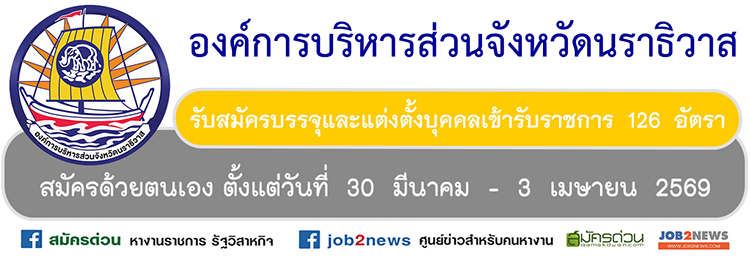 เจ้าหน้าที่ องค์การบริหารส่วนจังหวัดนราธิวาส ชั้น 1 กำหนดการรับสมัคร ตั้งแต่วันที่ 30 มีนาคม 2569 ถึงวันที่ 3 เมษายน 2569