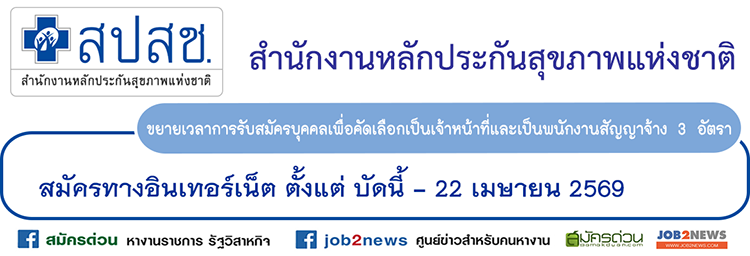 ประกาศสํานักงานหลักประกันสุขภาพแห่งชาติ เรื่อง ขยายเวลาการรับสมัครบุคคลเพื่อคัดเลือกบรรจุแต่งตั้งเป็นเจ้าหน้าที่และเป็นพนักงานสัญญาจ้าง โดยมีรายละเอียดดังต่อไปนี้